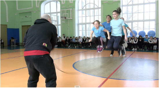 Отличную физическую подготовку и спортивный азарт продемонстрировали команды 5-х классов на прошедших в спортивном зале школы "Веселых стартах"